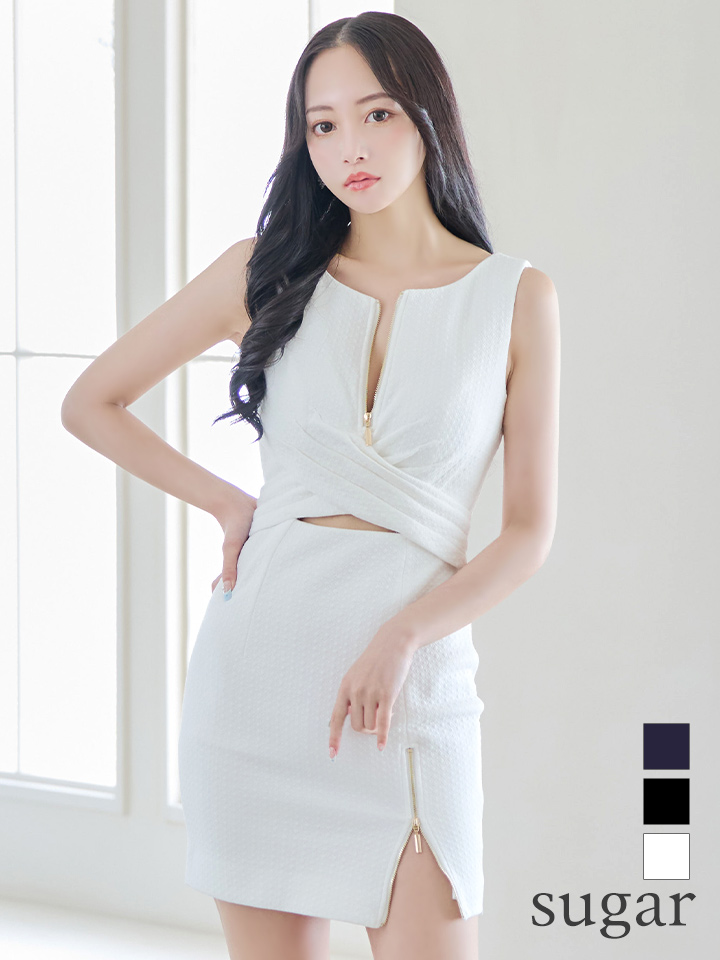 再入荷【IRMA/イルマ】ワンカラー/ ジップ/ タック/ カットアウト/ ストレッチ/ ノースリーブ/ タイト/ ミニドレス/ キャバドレス【HC02】 [35840-IR-B-S230622]