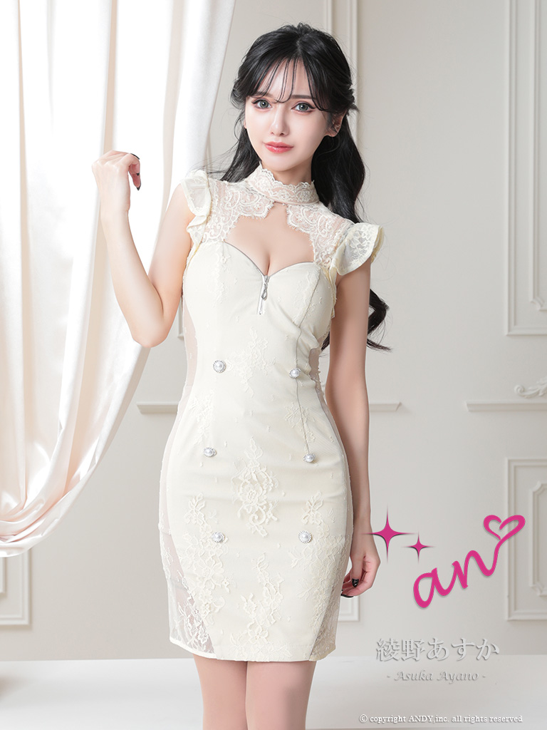 【an/アン】総レース/ フロントジップ/ ノースリーブ/ サイドシアー/ ワンカラー/ タイト/ ミニドレス/ キャバドレス[OF05] [AOC3445-YE-2306]