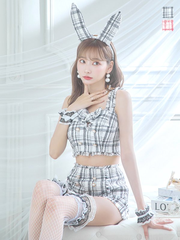 【SALE!!】【即日発送】【ハロウィン】ツイードバニーリボンセットアップ(パンツ)【コスプレ6点セット】 【XS-Mサイズ/2カラー】[HC03] [HW-078-yn-dzw-23PY-1]