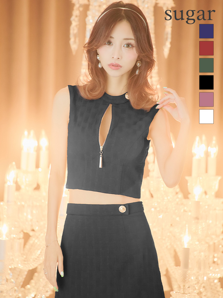 門りょうちゃん着用☆XSサイズあり【Glossy/グロッシー】ジップ/ バストxウエストカット/ ワンカラー/ セットアップ/ ストレッチ/ タイト/ ミニドレス/ キャバドレス[OF08] [GL2953-GL3134-S230801]