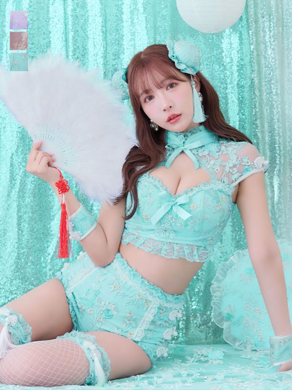ちゃいな 中華服 レース セットアップ 2ピース ツーピース フリル 半袖