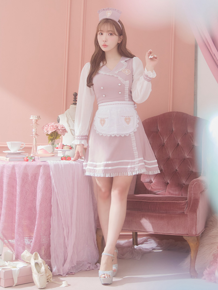 【即日発送】ナースコスプレ/ワンピースコスプレ/Aライン/フレアスカート【sugar nineハロウィン3点セット】【S-Lサイズ/1カラー】(SU220155)[HC03] [SU220155-23MY]