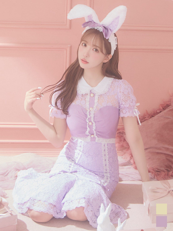 バニー うさぎ ウサギ アニマル ミディアムスカート パープル アイボリー レースバニー バニーワンピース マーメイドスカート ロングスカート 五分袖 ハーフスリーブ ラビット 兎 ロングスカート ミディアム丈 ミモレ丈 マキシ丈 一般 露出が少ない