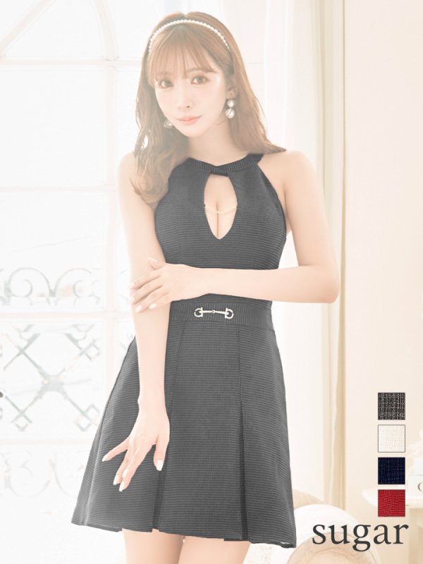モダンテイストながらもしっかりと開いたバストがSEXYさをアピールするフレアミニドレス。