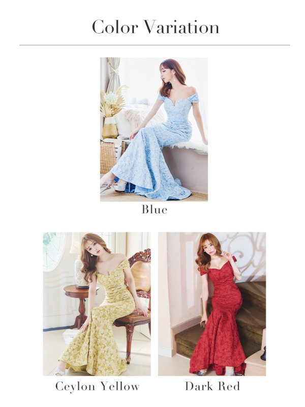 Lサイズあり【UNA VALERIE / ウナヴァレリェ】フラワージャガード/ オフショル/ バックスピンドル/ マーメイド/ ロングドレス/ キャバドレス long[OF05] [V60042L-CeylonYE-S2309]