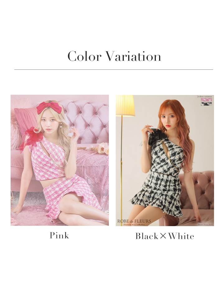sugar限定コラボ☆XS-Lサイズあり【ROBE de FLEURS/ローブドフルール】セットアップ/ ツイード/ リボン/ ワンショルダー/ バストカット/ タイト/ ミニドレス/ キャバドレス[OF08] [fm2968-P-S230919]
