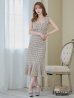 Lサイズあり【DEA./ディア】スプリングツイード/ マーメイド/ フリル/ ゴールドボタン/ ジップ/ ミモレ丈/ ワンピース/ キャバドレス【OF08】 [DE3307-IVmix-S230922]