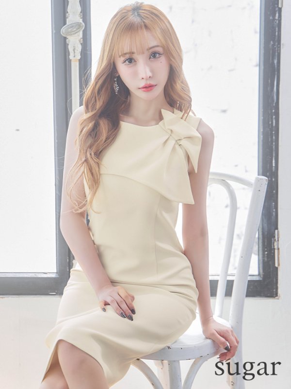 XS-Lサイズあり 【GINZA COUTURE/銀座クチュール】シンプル/ ワンカラー/ ノースリーブ/ タイト/ 膝丈/ ミディアムドレス/ キャバドレス[OF2] [LKC23050-IV-S2310]