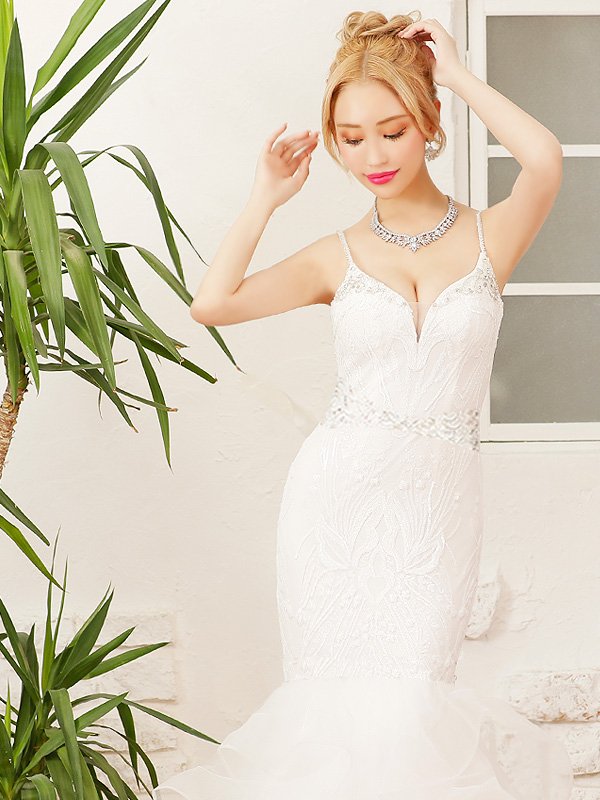 煌めくビジューとスパンコールが放つ高級感溢れる輝きが主役級の存在感をアピールする最上級ドレスとなっております。