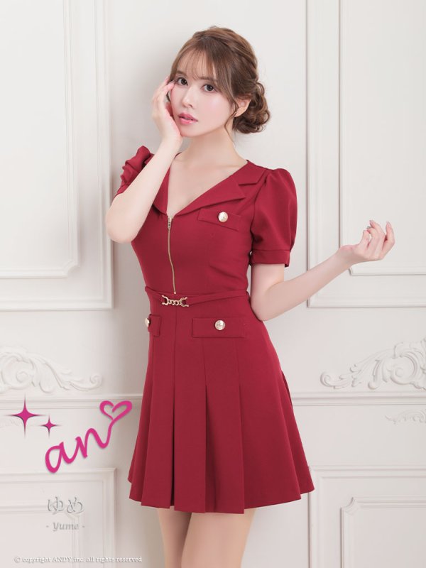XSサイズあり 【an /アン】フロントジップ/ ワンカラー/ パフスリーブ/ 襟付き/ ベルト付き/ プリーツスカート/ ミニドレス/ キャバドレス[OF05] [AOC3556-WinR-2310]