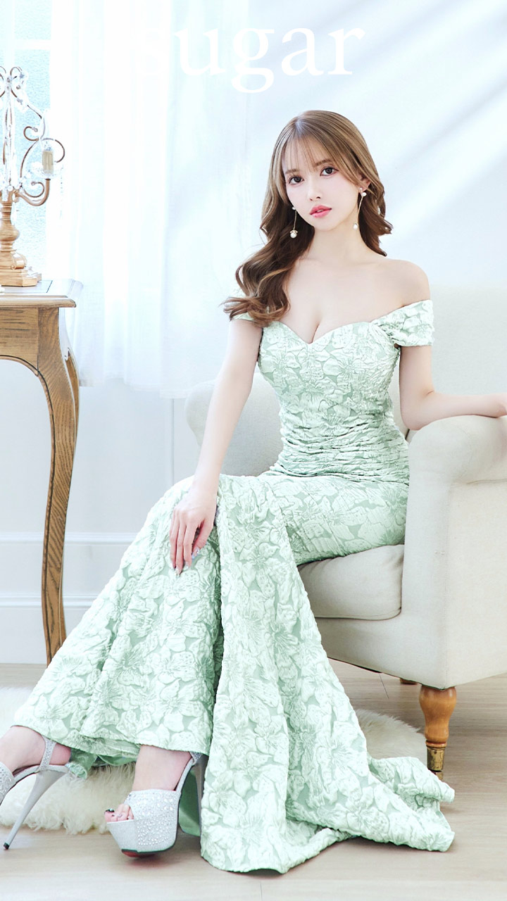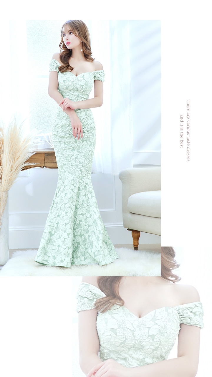 Lサイズあり【UNA VALERIE / ウナヴァレリェ】フラワージャガード/ オフショル/ バックスピンドル/ マーメイド/ ロングドレス/ キャバドレス long[OF05] [V60042L-IV-S2310]