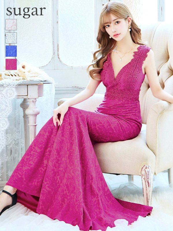 繊細なフラワーレースがエレガントな雰囲気漂うロングドレス