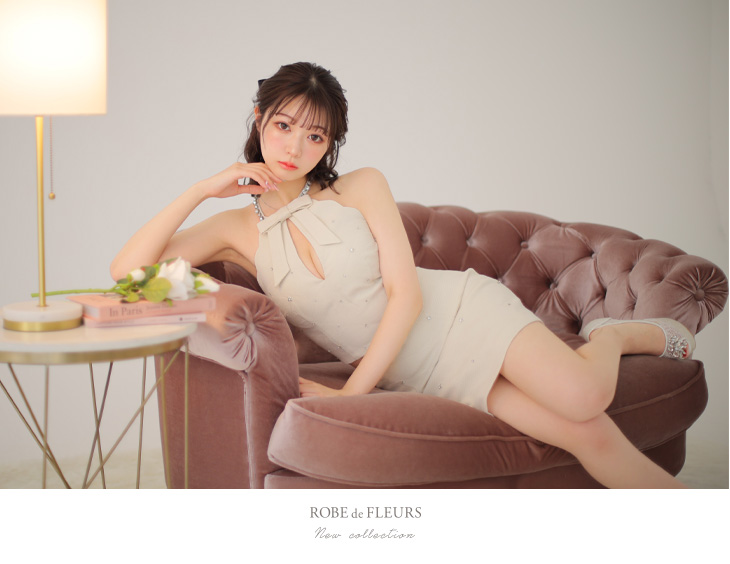 XSサイズあり【ROBE de FLEURS/ローブドフルール】セットアップ/ ホルターネック/ ビジュー/ バストカット/ リボン/ タイト/ ミニドレス/ キャバドレス[OF08] [fm3414-B-2311]