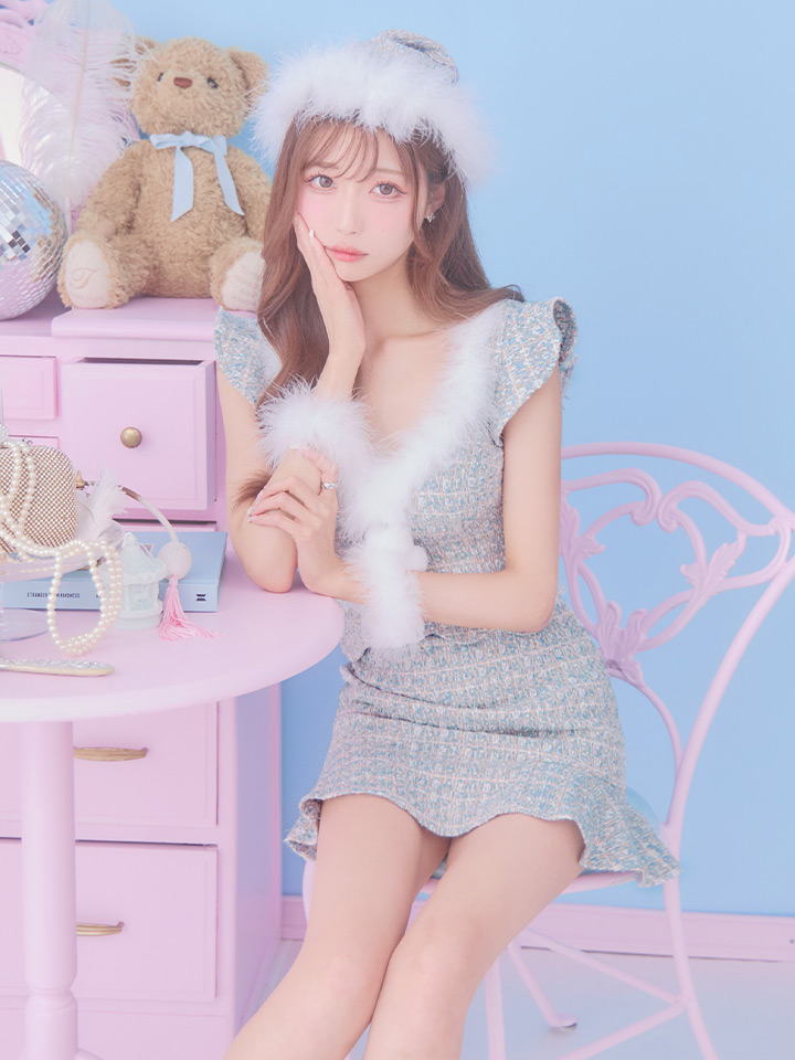 【サンタSALE!!】【即日発送】ツイード/ セットアップ/ マーメイドフレアミニドレスサンタ【サンタコス 5点セット】【XS-Mサイズ/4カラー】[OF04] [SS080YN-23AC-1]