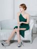 XSサイズあり【Veautt/ヴュート】【OF05】ネックビジュー/ ドレープ/ ファスナー/ スリット/ タイト/ ミディアムドレス/ キャバドレス [VT11232-GR-S231206]