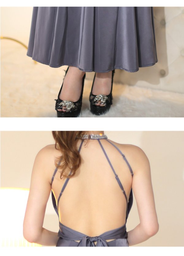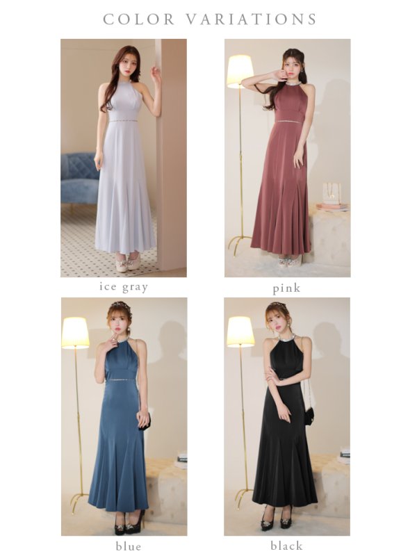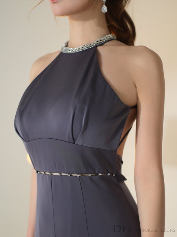 【DEA. by ROBE de FLEURS/ディアバイローブドフルール】高級感あるサテン生地を使用したホルターネックロングドレス