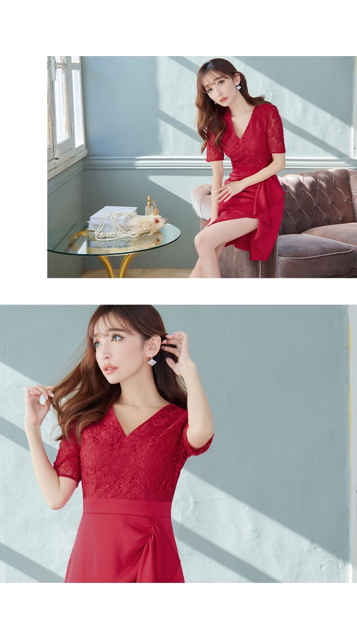 XS-Lサイズあり【ERUKEI エルケイ】レース/ フリル/ 袖あり/ 長袖/ 膝丈/ミディアムタイト/ ワンピース/ タイト/ ミディアムドレス/ キャバドレス[OF2] [LKE22089-R-S2401]