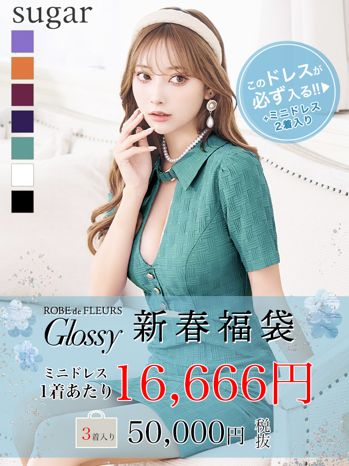 【新春福袋! 1/4(木)14:59まで!】【1月11日より順次発送】【福袋】XSサイズあり【Glossy/グロッシー】バストカット/ ウエストカット/ 袖あり/ 半袖/ バックル/ ストレッチ/ タイト/ ミニドレス/ キャバドレス[OF08] [GL3134-TQ-hpbg2024]