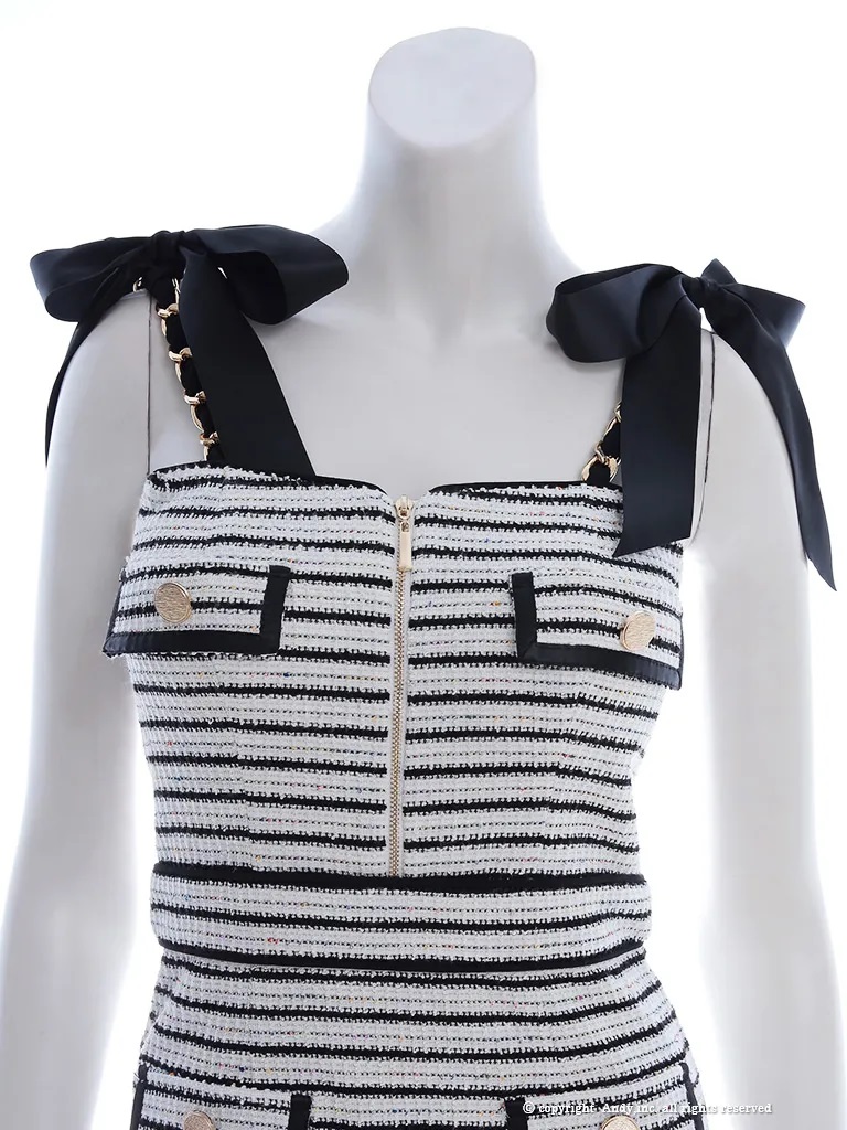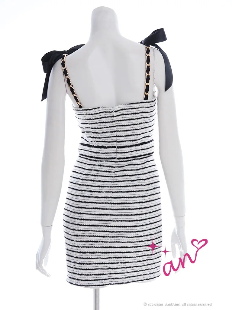 XSサイズあり【an /アン】 ボーダー/ ショルダーリボン/ チェーン/ フロントジップ/ ストレッチ/ タイト/ ミニドレス/ キャバドレス[OF05] [AOC3613-WxB-2402]