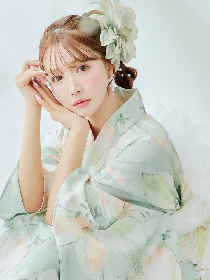 今年トレンドのミントカラーが華やかな大柄浴衣。