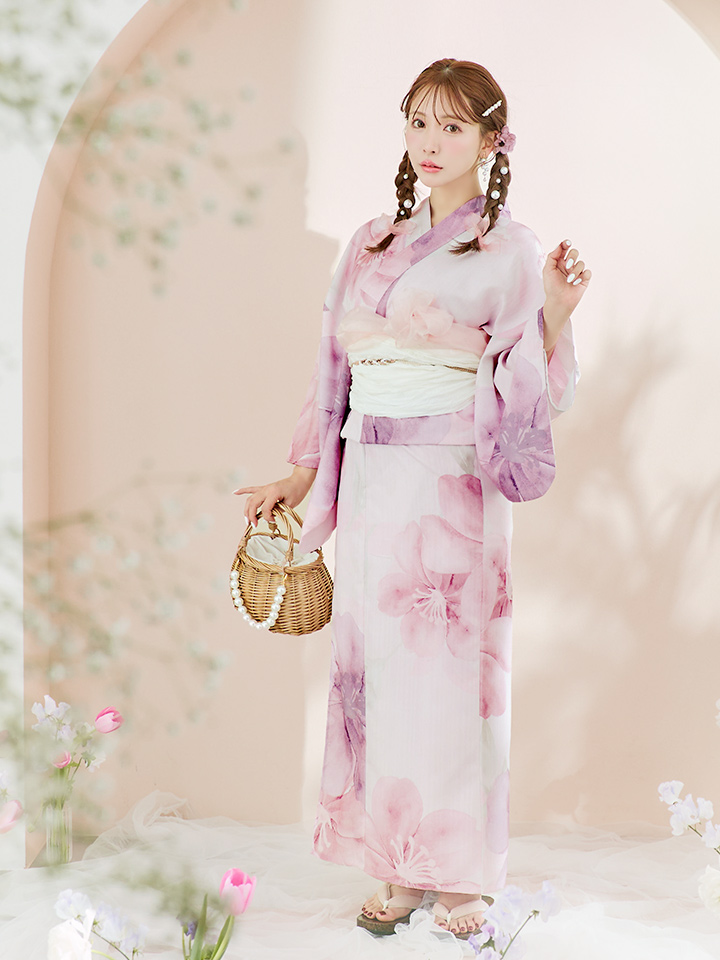 【即日発送!】sweetチェリーブロッサム浴衣【浴衣3点セット 浴衣/帯/下駄】[YMT] [Y-8033-nz-dzk-P-F-24MY]