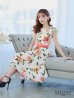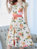 ホワイトベースに鮮やかなフラワープリントが大人可愛いワンピースドレス