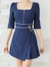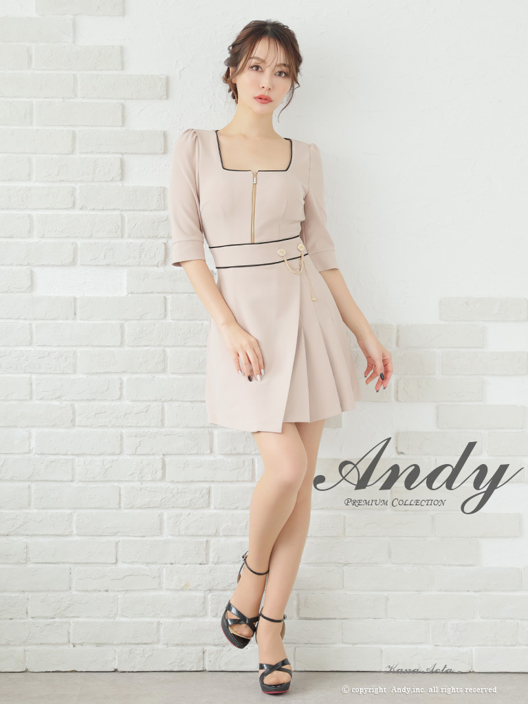 XSサイズあり【ANDY/アンディ】フロントジップ/ バイカラー/ チェーン/ 袖あり/ 七分袖/ フレア/ ミニドレス/ キャバドレス[OF05] [ON2823-WB-2402]