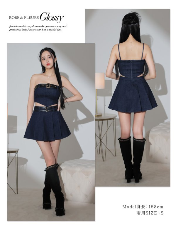 XSサイズあり【Glossy/グロッシー】ハンサムダブルベルト/ セットアップ/ ベア/ キャミ/ 2way/ プリーツ/ フレア/ ミニドレス/ キャバドレス[OF08] [GL3331-IV-2403]