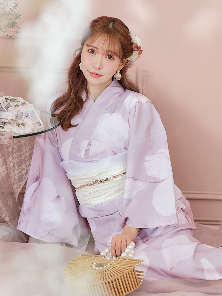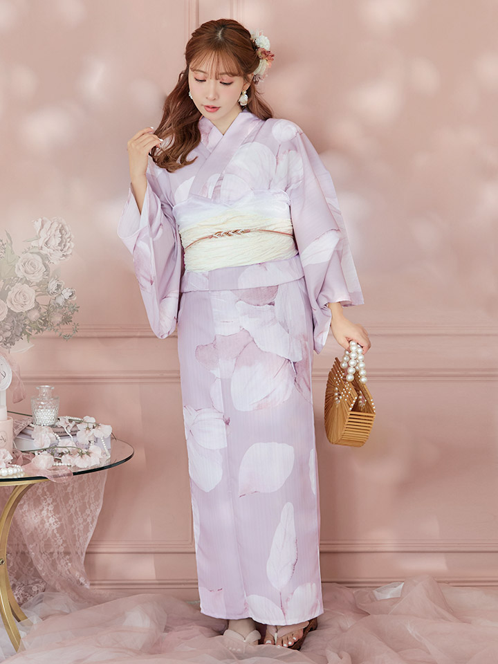 【即日発送】くすみピンクブロッサム浴衣【浴衣3点セット 浴衣/帯/下駄】[YMT] [Y-8049-nz-dzk-P-F-24MY]