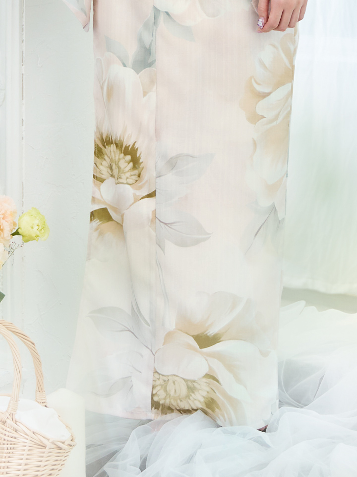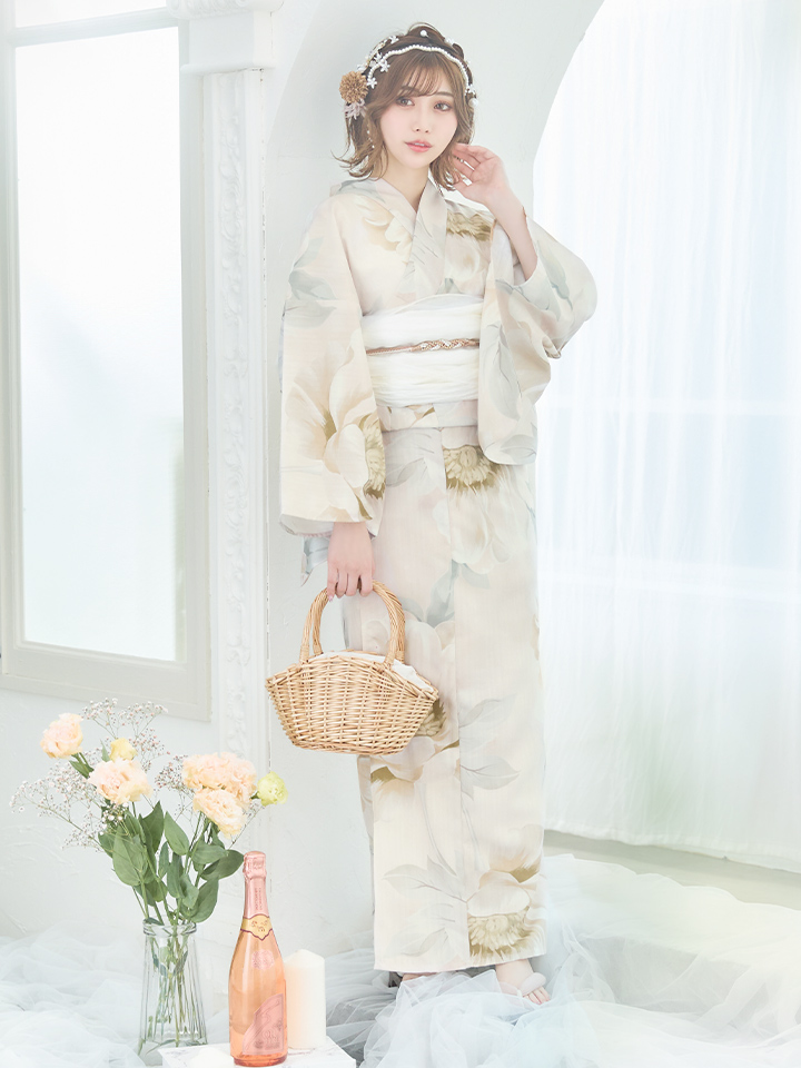 大人っぽいクリームカラーでまとめたピオニー浴衣。