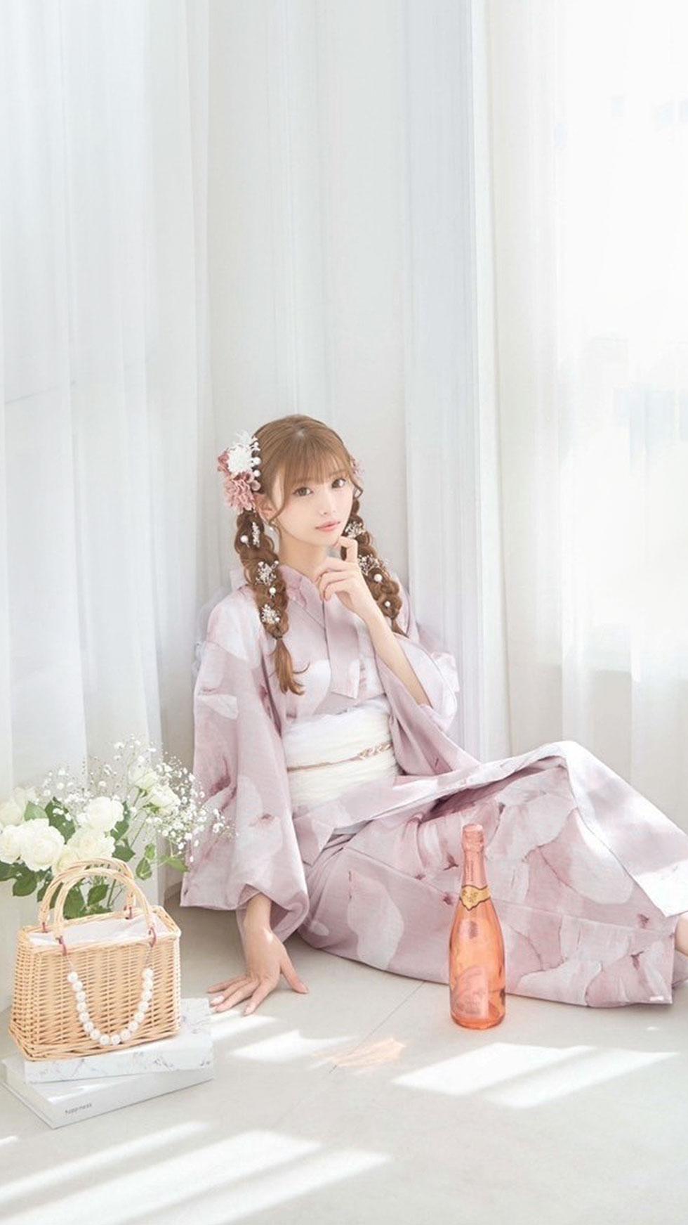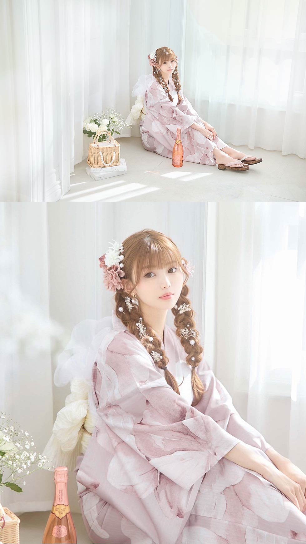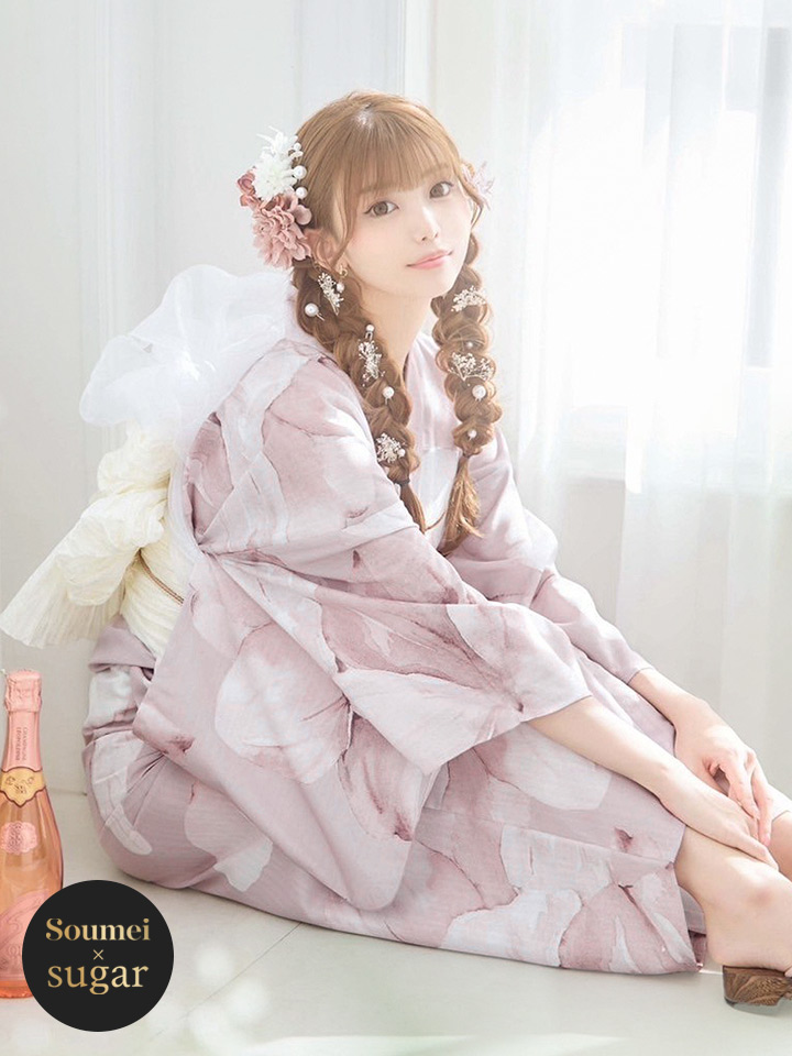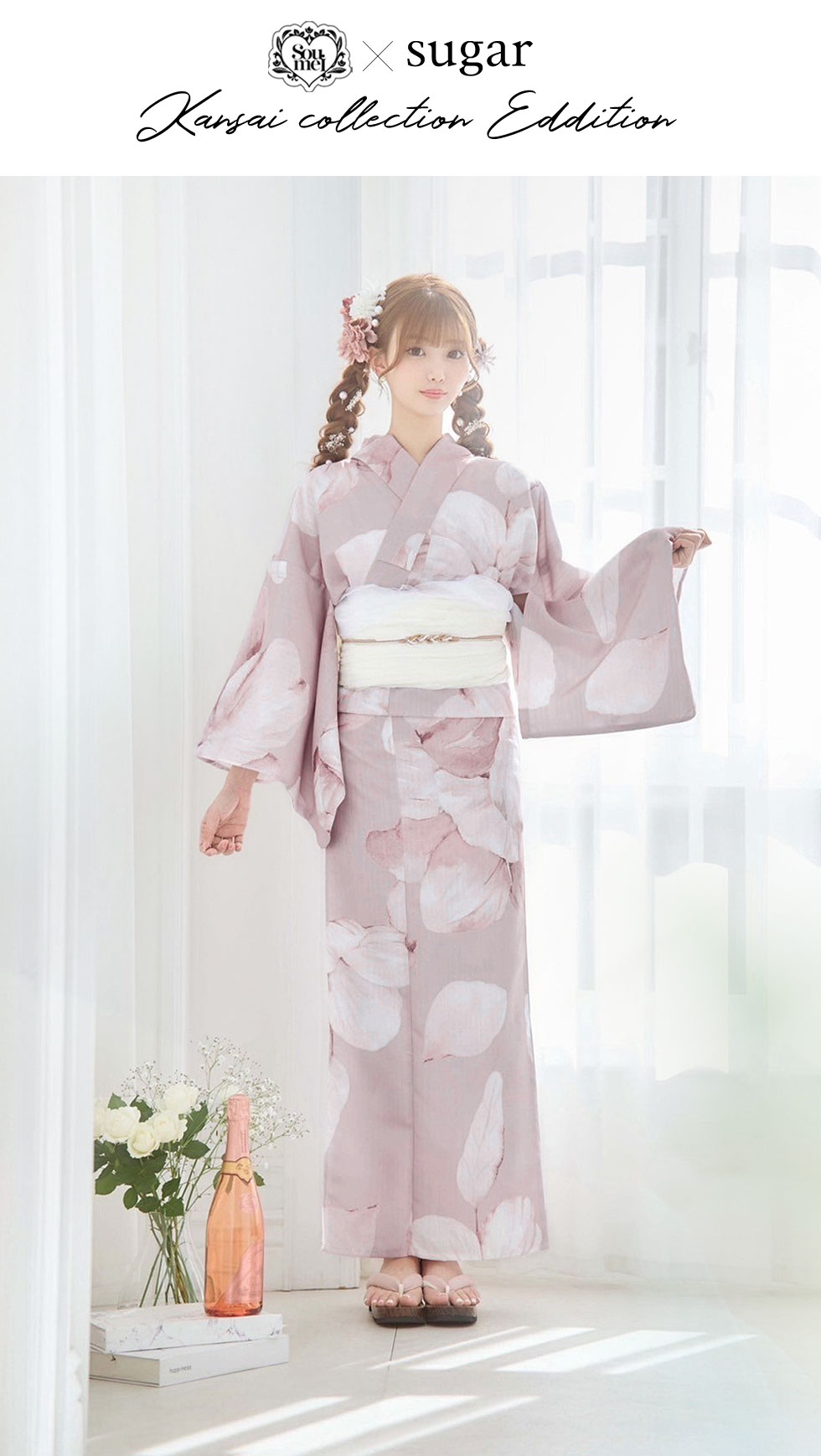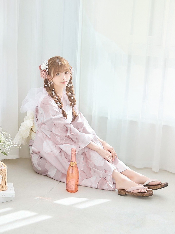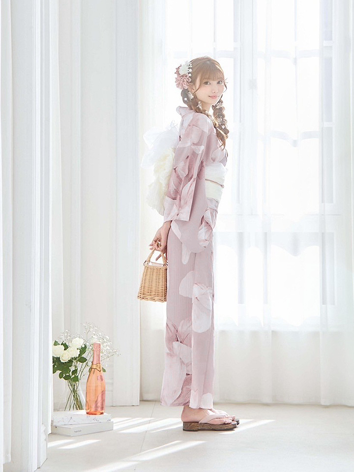【即日発送!】くすみピンクブロッサム浴衣【浴衣3点セット 浴衣/帯/下駄】[YMT] [Y-8049-nz-dzk-P-F-24sou]