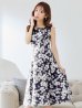 【XSサイズあり】 【GINZA COUTURE/銀座クチュール】ワンピース/ フラワープリント/ ノースリーブ/ Aライン/ フレア/ ミモレ丈/ ミディアムドレス/ キャバドレス[OF2] [LKC24003-YExW-S2404]