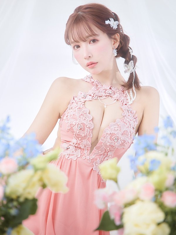 大胆なバストカットにCUTEなフラワー刺繍が周囲の視線を独り占め。