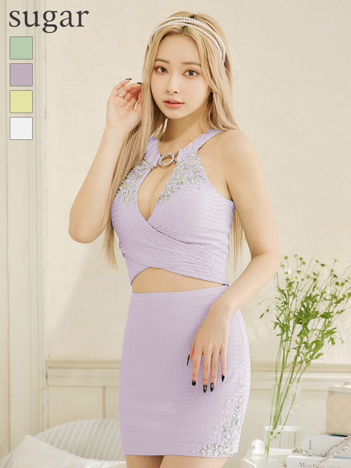 XSサイズあり【ANGEL R/エンジェルアール】デコルテビジュー/ リング/ アンイーブンファブリック/ セパレート/ マイクロミニ/ タイト/ ミニドレス/ キャバドレス[OF2] [AR24308-MIGR-S2404]