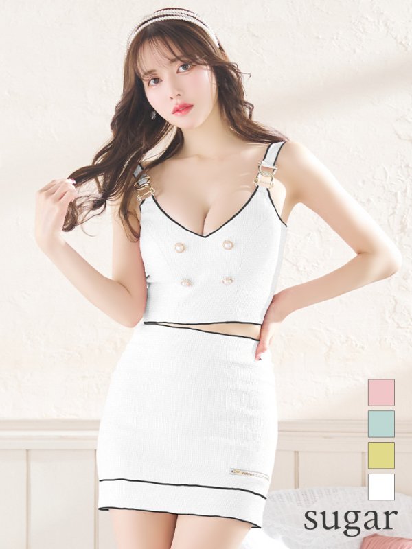 XSサイズあり【PURESS/ピュアレス】ショルダーバックル/ パールボタン/ ツイード/ セパレート/ タイト/ ミニドレス/ キャバドレス[OF5] [PS302405-W-S240413]