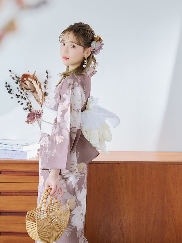【即日発送】ピンクベージュフラワー浴衣【浴衣3点セット 浴衣/帯/下駄】[YMT] [Y-9029-ok-BR-F-24IE]