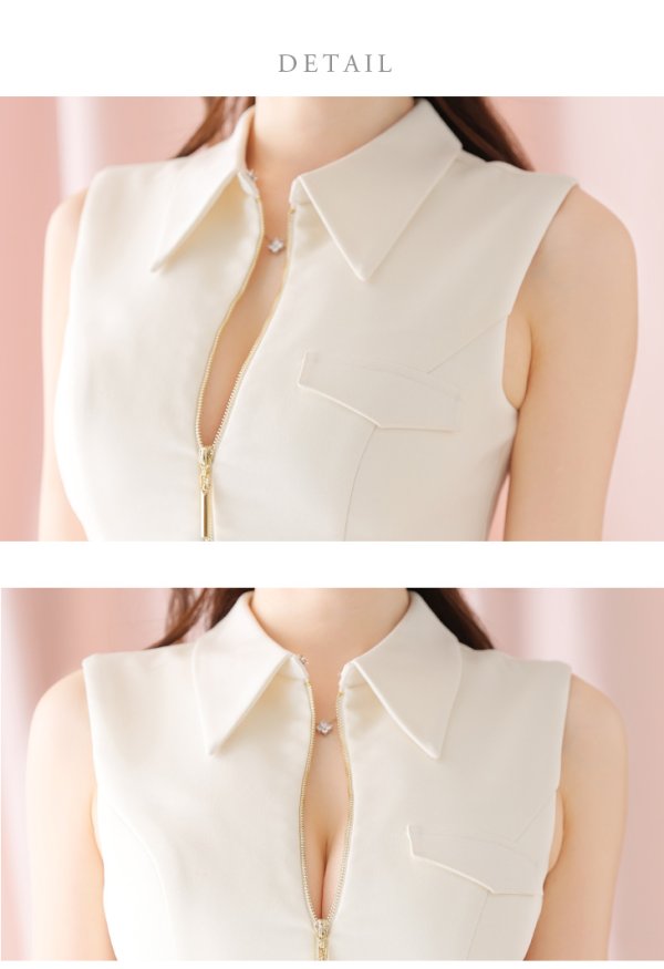ノースリーブとバスト部分のジッパーでセクシーさも演出♡