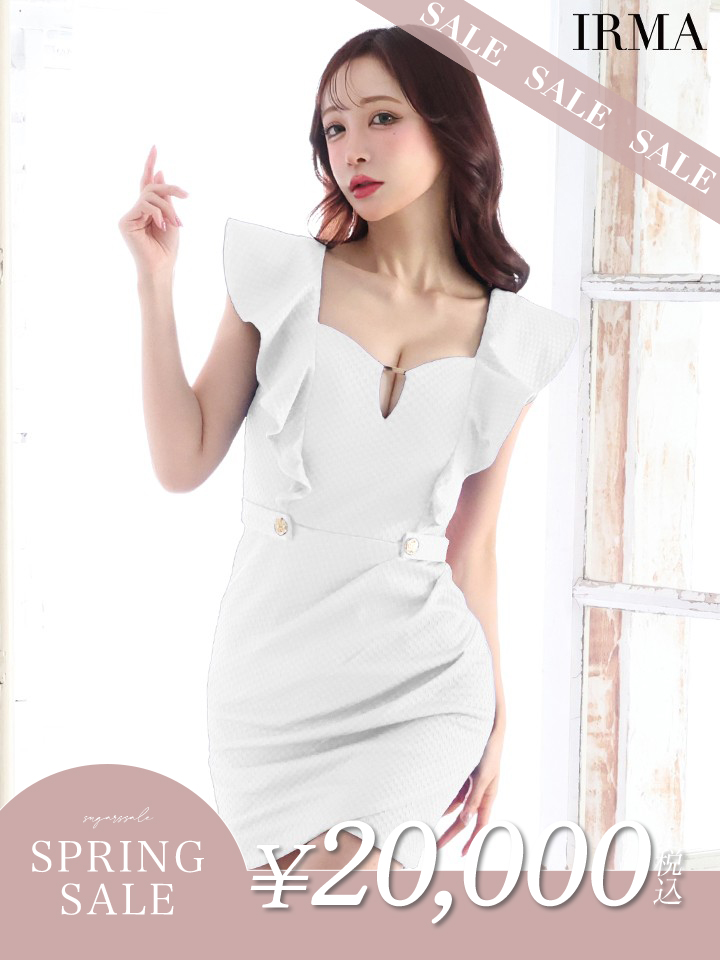 【決算SALE開催中!! 】XSサイズあり【IRMA/イルマ】フリルショルダー/ ワンカラー/ カットアウト/ ボタン/ タイト/ ミニドレス/ キャバドレス[HC02] [45953-IR-W-2405]