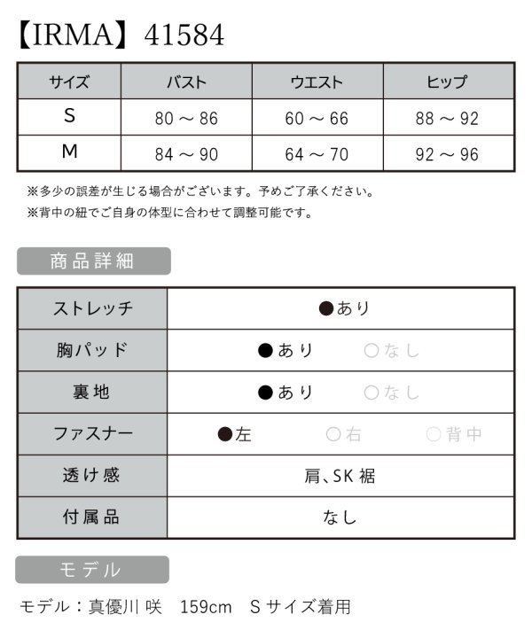 B:88 / W:68 / H:92 [着丈](脇下)約136 |