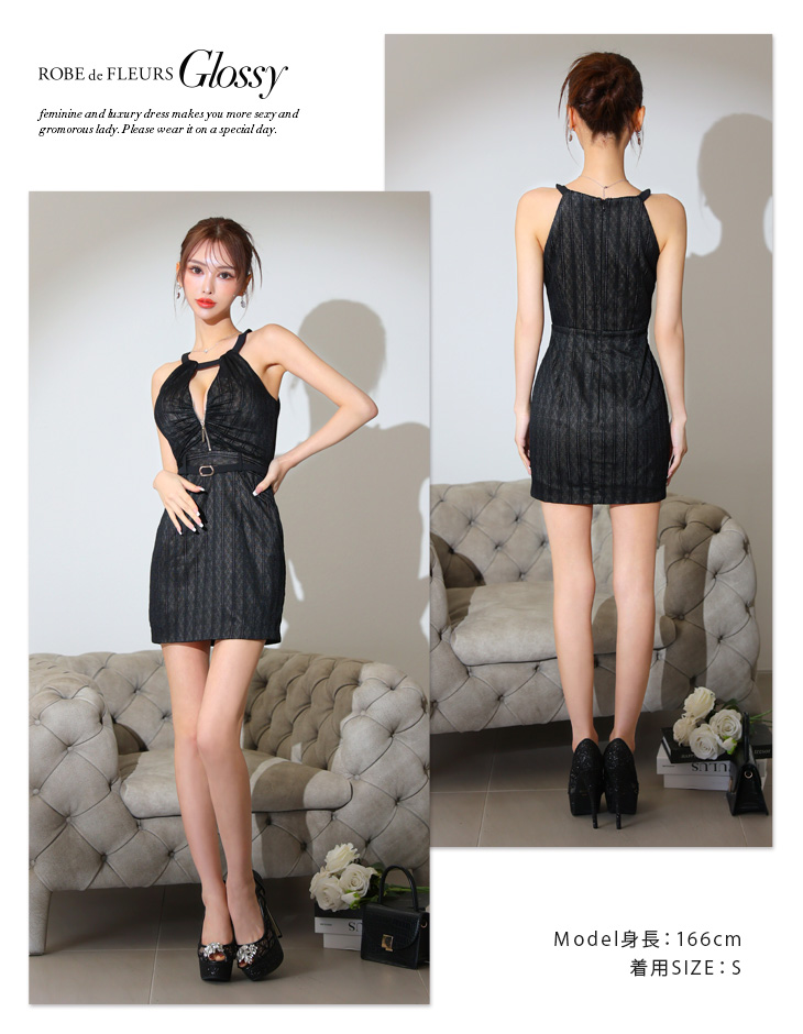 XSサイズあり【Glossy/グロッシー】バストジッパー/ ベルトデザイン/ ホルターネック/ ミニドレス/ キャバドレス[OF08] [GL3719-W-2405]