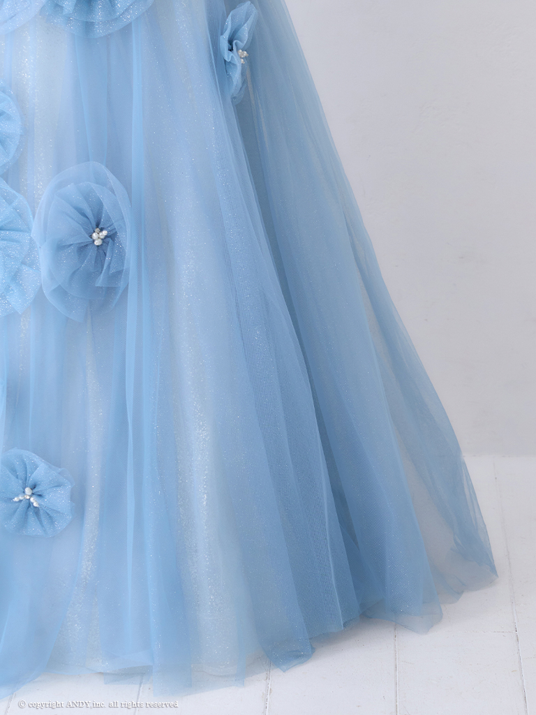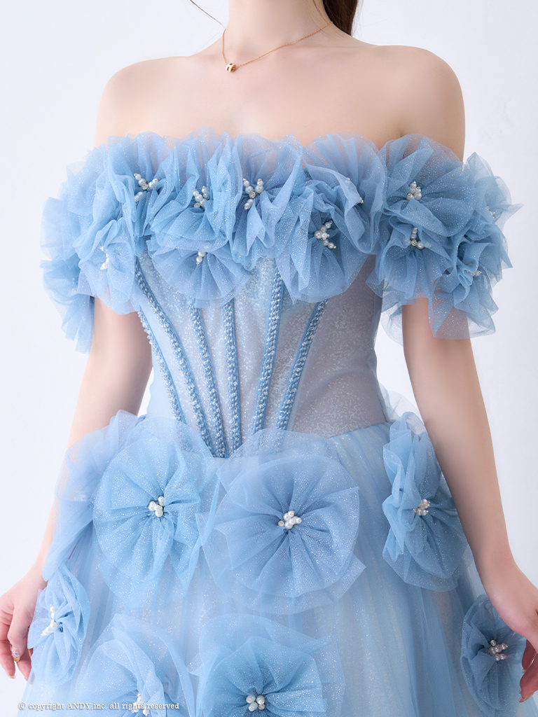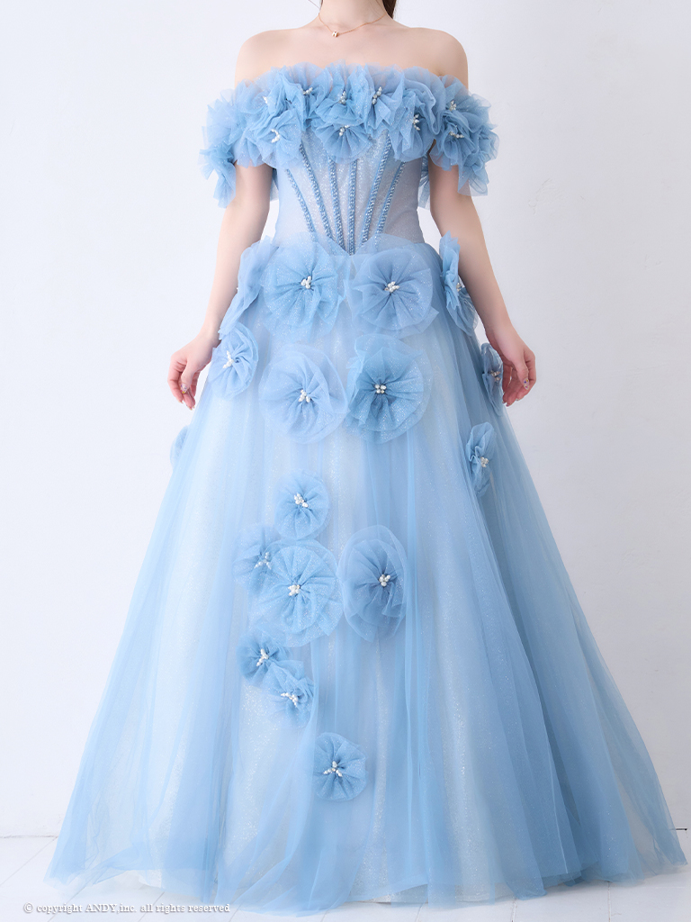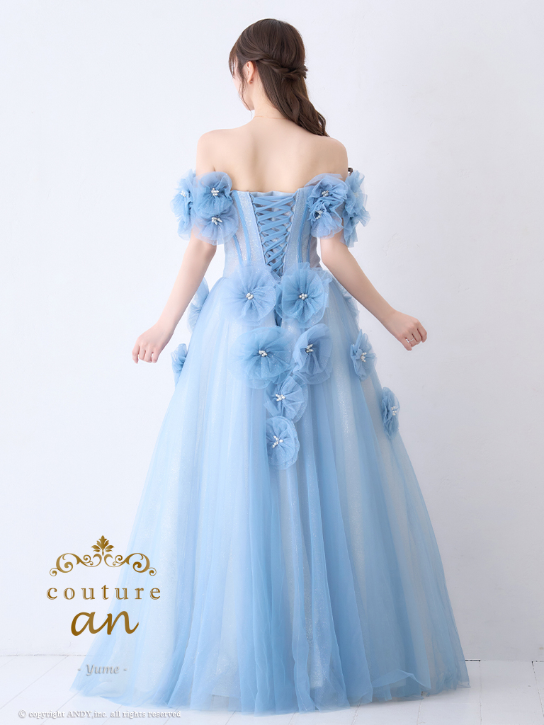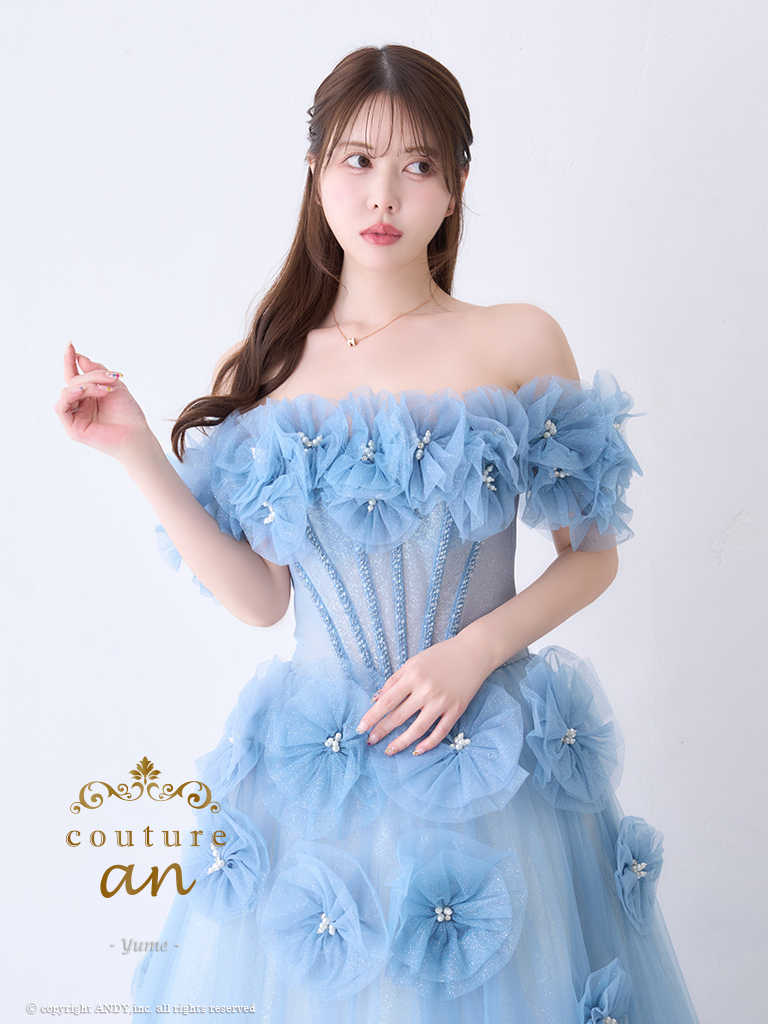 【couture an/クチュールアン】オフショルダー/ 立体フラワー/ ビジュー/ パール/ フレア/ Aライン/ プリンセス/ ロングドレス/ キャバドレス long[OF05] [AOC-WD-028-BL-2406]