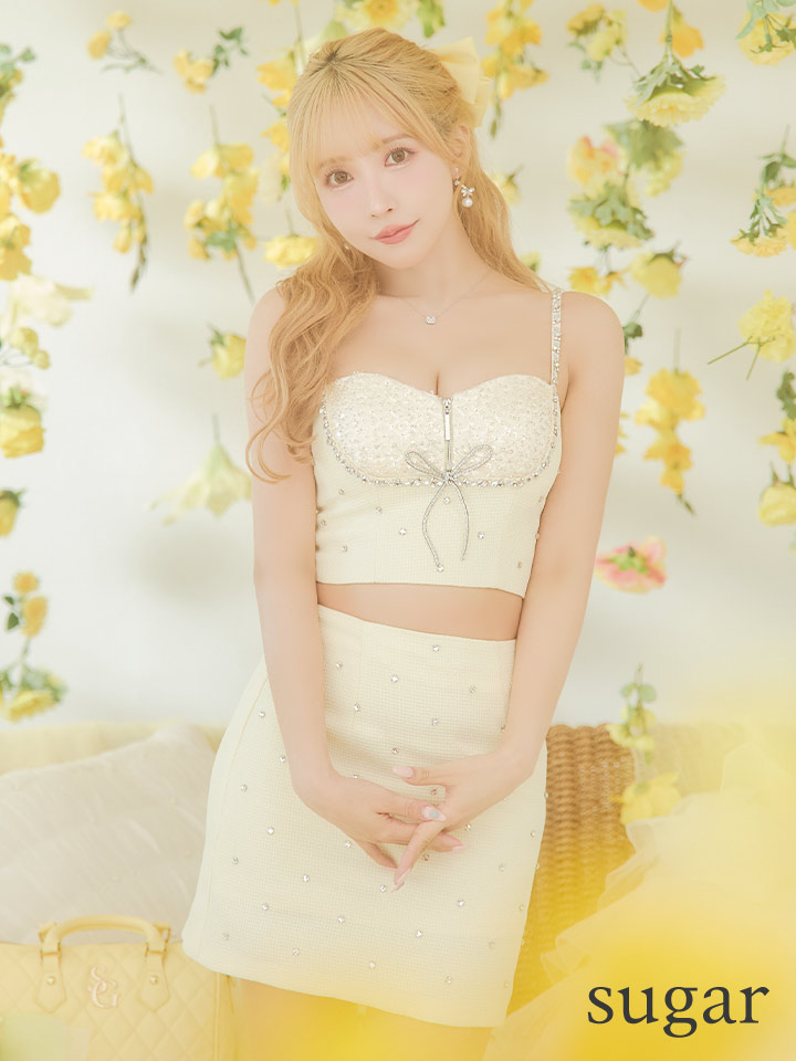 sugarコラボカラー・XSサイズあり【ROBE de FLEURS/ローブドフルール】ビジューリボンライン/ スパーク/ セットアップ/ タイト/ ミニドレス/ キャバドレス[OF08] [fm3738-B-S240610]