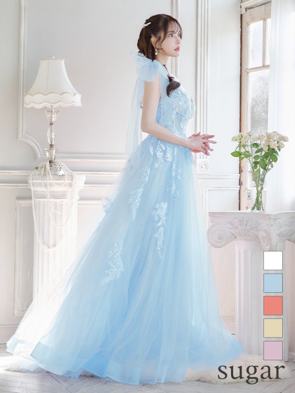 Lサイズあり【JEAN MACLEAN/ジャンマクレーン】 ショルダーリボン/ ノースリーブ/ 刺繍/ ワンカラー/ レース/ プリンセス/ ロングドレス/ キャバドレス long[OF2A] [41554-JM-BL-S2406]