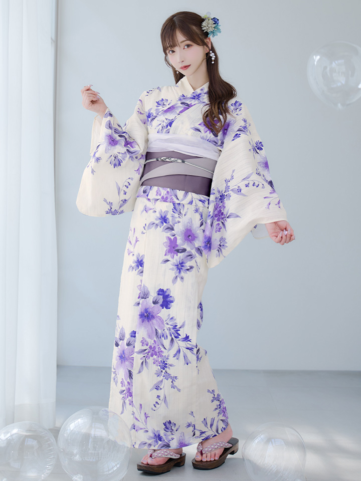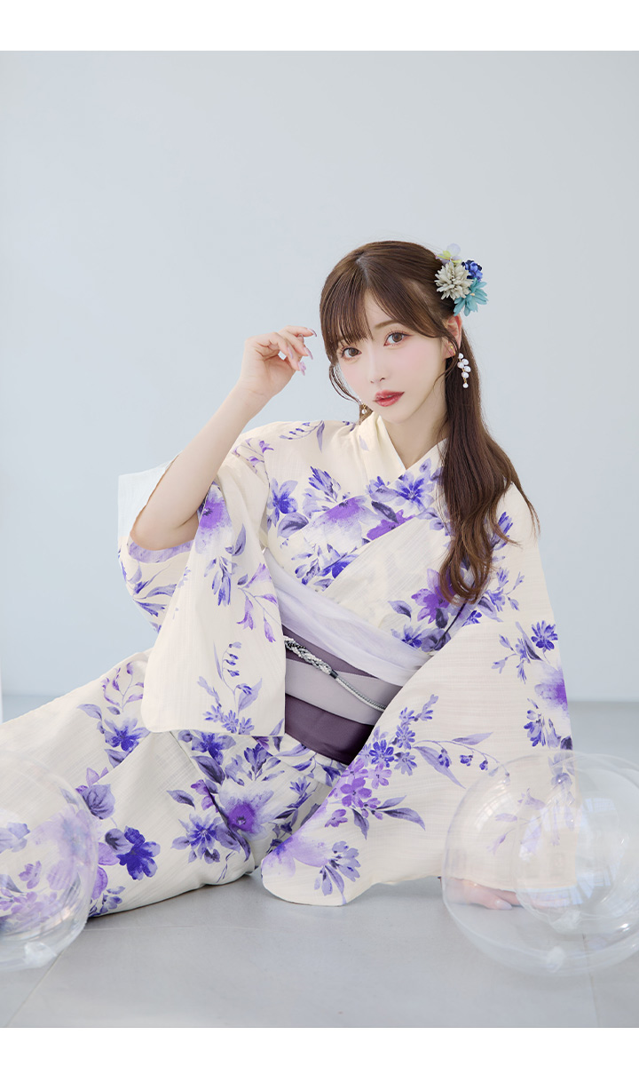 【即日発送】白地xパープルグラデーション浴衣【浴衣3点セット 浴衣/帯/下駄】[YMT] [Y-7085-ok-W-F-24RC]