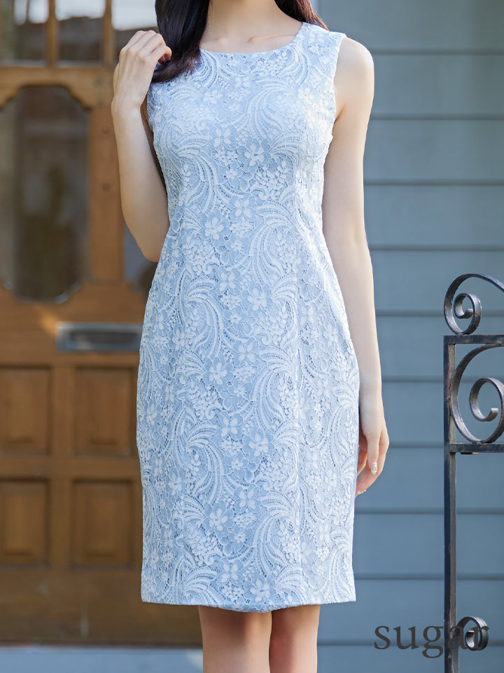 XS-Lサイズあり 【GINZA COUTURE/銀座クチュール】フラワーレース/ ノースリーブ/ ひざ丈/ タイト/ ワンピース/ ミディアムドレス/ キャバドレス[OF2] [LKC24032-BLxW-S240712]
