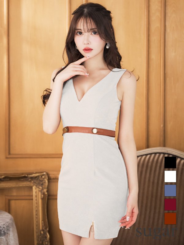 XSサイズあり【Glossy/グロッシー】ウエスト切り替え/ フェイクレザー/ ノースリーブ/ ワンカラー/ タイト/ ミニドレス/ キャバドレス[OF08] [GL3504-Wxcamel-S240802]
