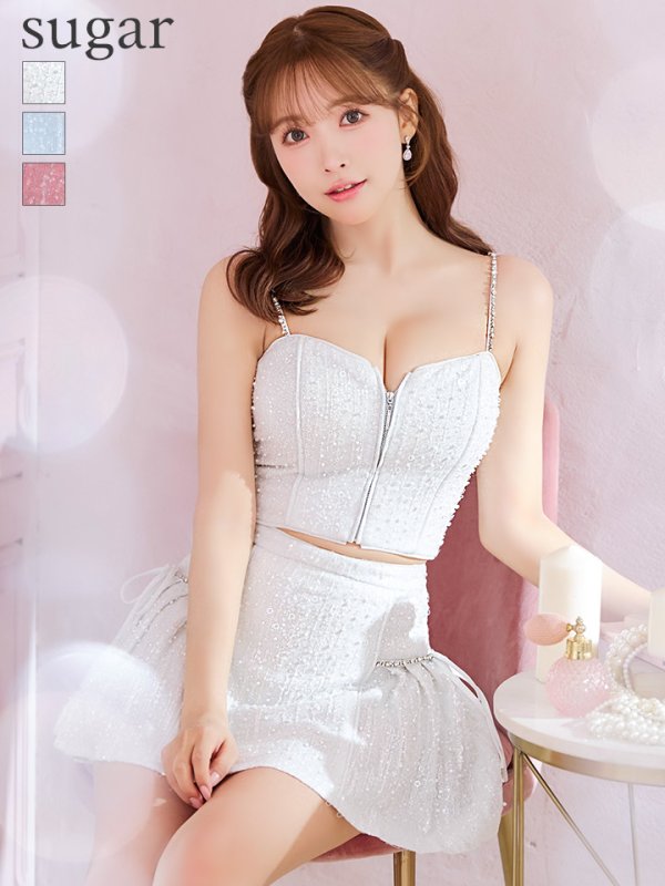 XSサイズあり【ROBE de FLEURS/ローブドフルール】バストジップ/ サイドリボン/ スパークル/ フレア/ ミニドレス/ キャバドレス[OF08] [fm3270-W-S240819]