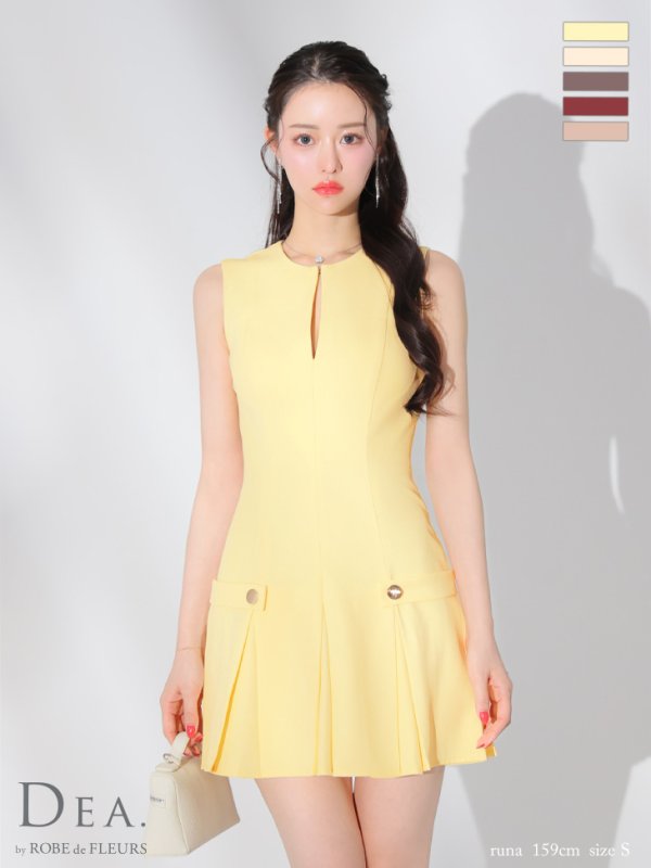 XS-Lサイズあり【DEA./ディア】シンプル/ サイドベルトモチーフ/ ノースリーブ/ プリーツ/ フレア/ ミニドレス/ キャバドレス[OF08] [DE3362-IV-2409]
