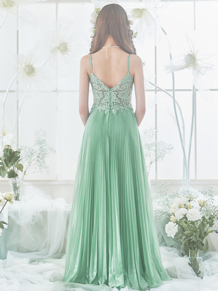 繊細なプリーツが美しいAラインシルエットを惹き立てエレガントな装いに