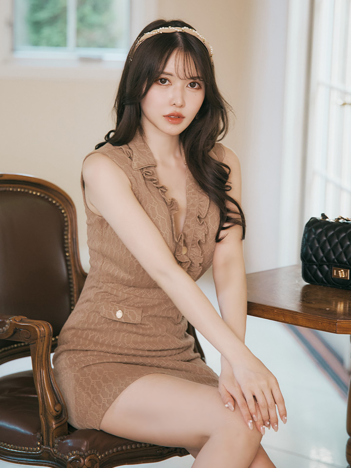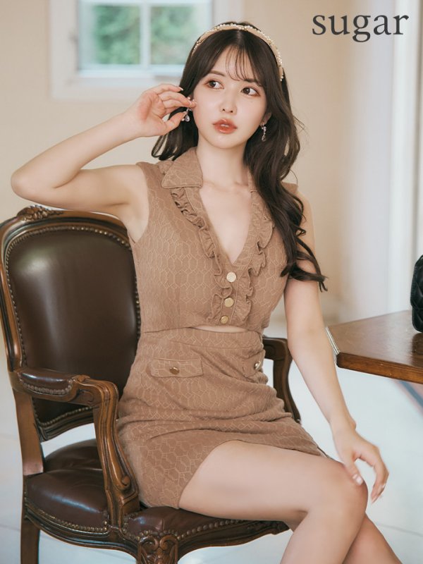 オリジナルカラー・XSサイズあり【IRMA/イルマ】フリル/ ウエストカット/ ニット/ 襟付き/ タイト/ ミニドレス/ キャバドレス[OF2A] [45987-IR-Mocha-S240918]